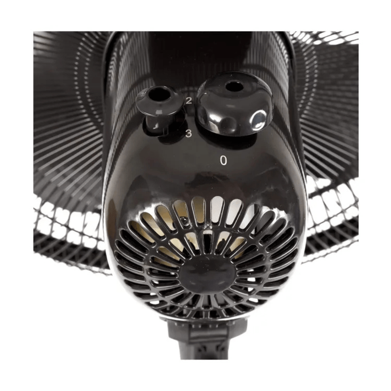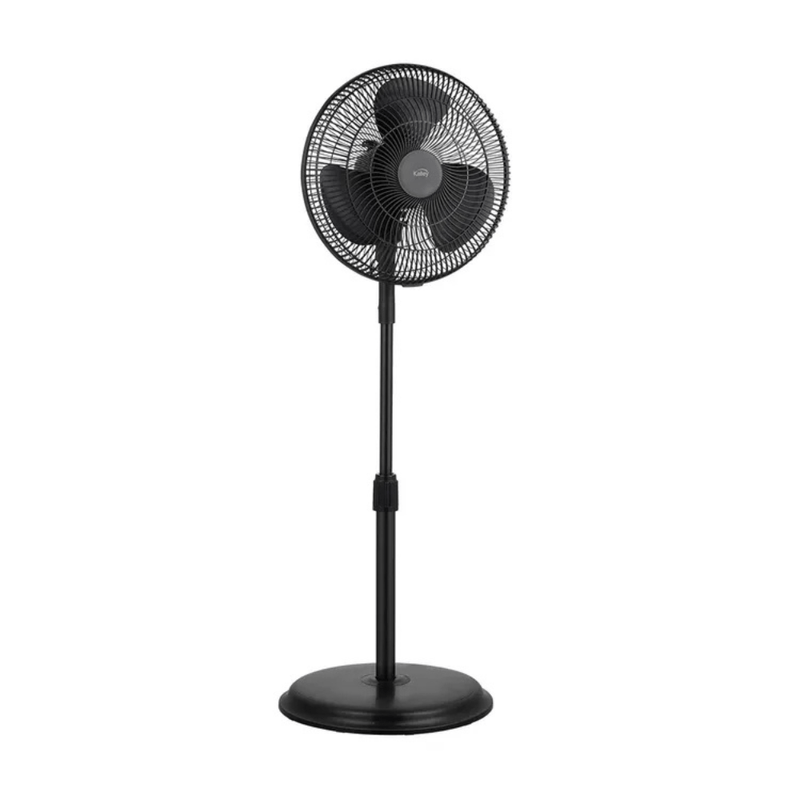 Ventilador Kalley 2 en 1 de 16” con altura ajustable y potencia de 32W. Ofrece función oscilatoria de 75°, inclinación vertical de 34° y 3 velocidades.
