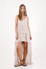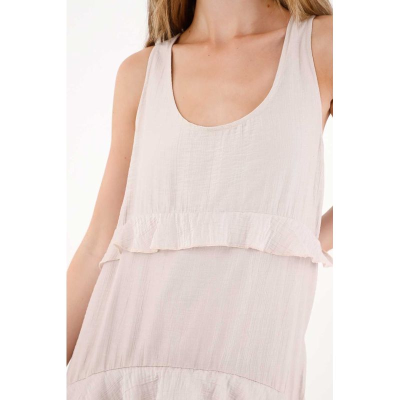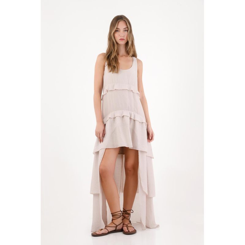 Los boleros y la silueta cola de pato crean un efecto dramático y femenino, mientras la manga sisa mantiene el look ligero y airy. Perfecto para combinar con sandalias, botas o tenis según tu mood.