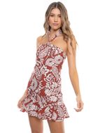 Vestido corto con cargadera tipo halter, diseñado para resaltar los hombros y aportar una silueta estilizada y femenina. Su escote halter crea un efecto moderno y favorecedor, ideal para climas cálidos y planes donde el look es protagonista.