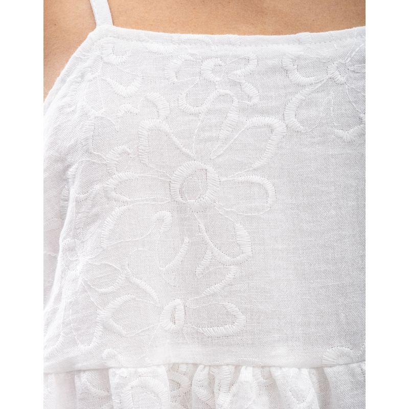 Vestido corto de tiras con bodado de flores con recogido en falda, diseñado para un look femenino y elegante. El ojalillo añade un toque de romanticismo y sofisticación, mientras que el recogido en la falda crea un efecto de movimiento y gracia. El vestido corto es ideal para ocasiones especiales o para un look diario más elegante. La tela suave y ligera garantiza una comodidad total, y el diseño versátil se adapta a cualquier estilo y ocasión. color blue nace en 1984, fue creada para ser una marca honesta y familiar, la cual se enfocaba principalmente en la producción y exportación de ropa. hoy somos un equipo que trabaja con pasión y hemos cambiado completamente nuestra filosofía. nuestra marca está hecha para ambos géneros con un estilo muy nuestro. somos una empresa colombiana con experiencia en el mercado a través de la comercialización de prendas de vestir.