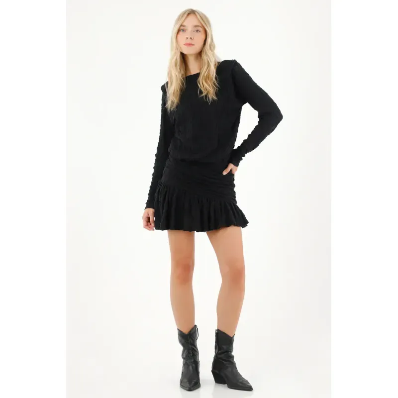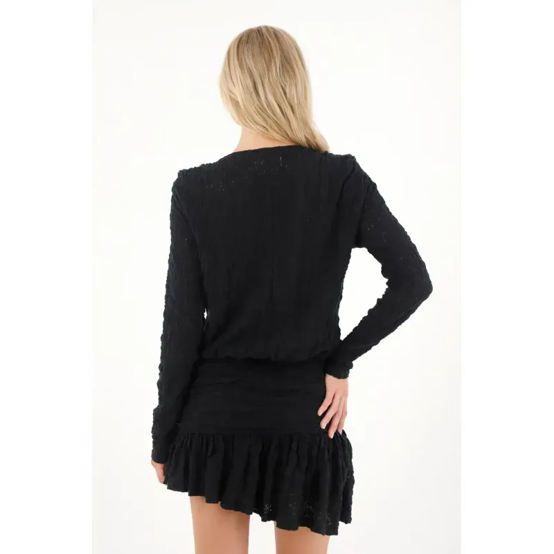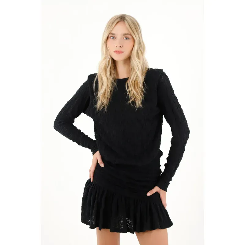 Vestido corto en blonda negro para mujer
