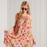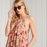 Prepárate para la playa con este vestido con cierre delantero de corchetes, diseño de ojo de cerradura, cuello alto, dos bolsillos laterales, ribete de encaje y etiqueta metálica con el logo de la marca. Cierre de corchetes y diseño de ojo de cerradura, Cuello alto, Ribete de encaje, Dos bolsillos laterales, Etiqueta metálica con el logotipo.