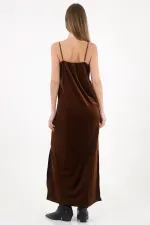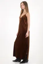 Pensado para aquellas que aman las piezas que lo dicen todo sin necesidad de accesorios, este vestido largo funciona para eventos, salidas especiales o noches donde quieres que la prenda sea la protagonista. Su caída estiliza, las tiras mantienen el look ligero y el tono lo hace fácil de combinar.