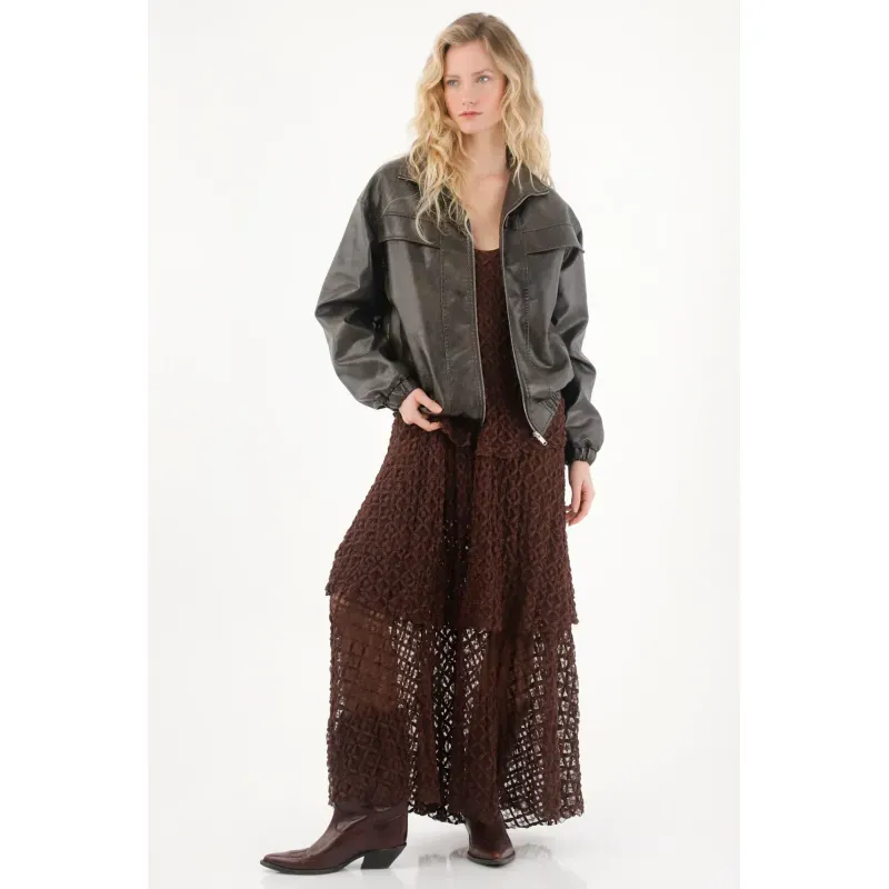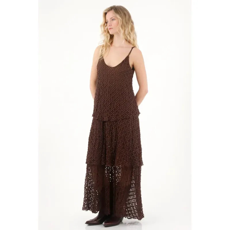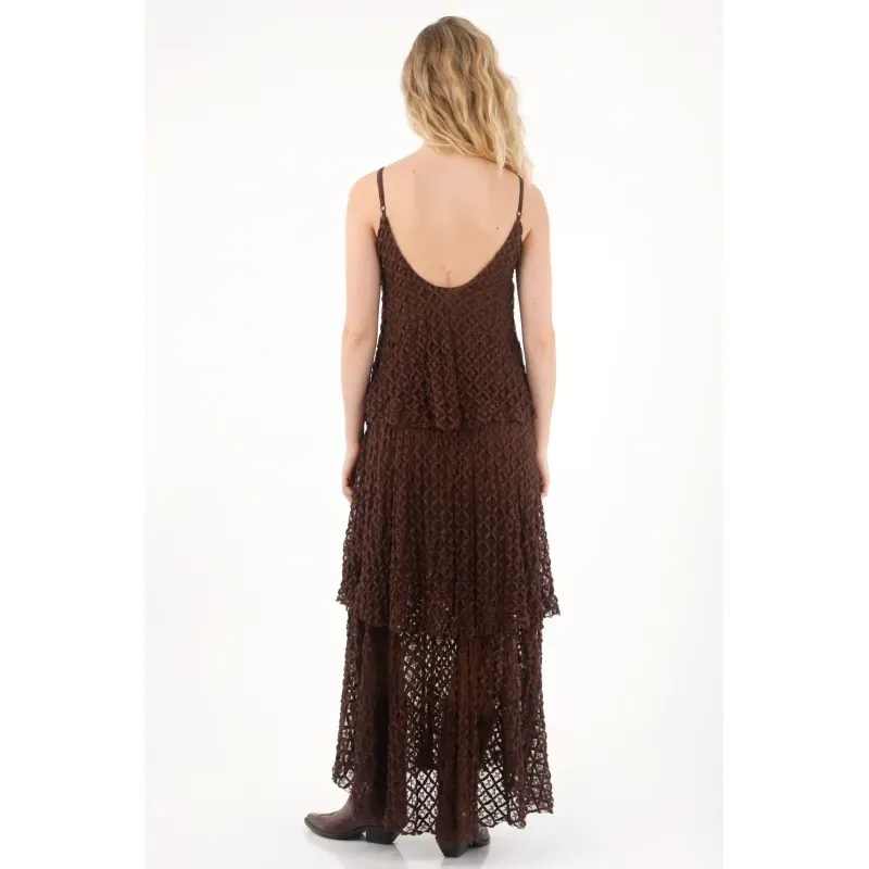 Su diseño largo con tiras graduables, escote en V, cortes con bolero y tela con apariencia tejida te permitirá lucir tan femenina como llamativa y disfrutar de cada plan siendo siempre la protagonista.