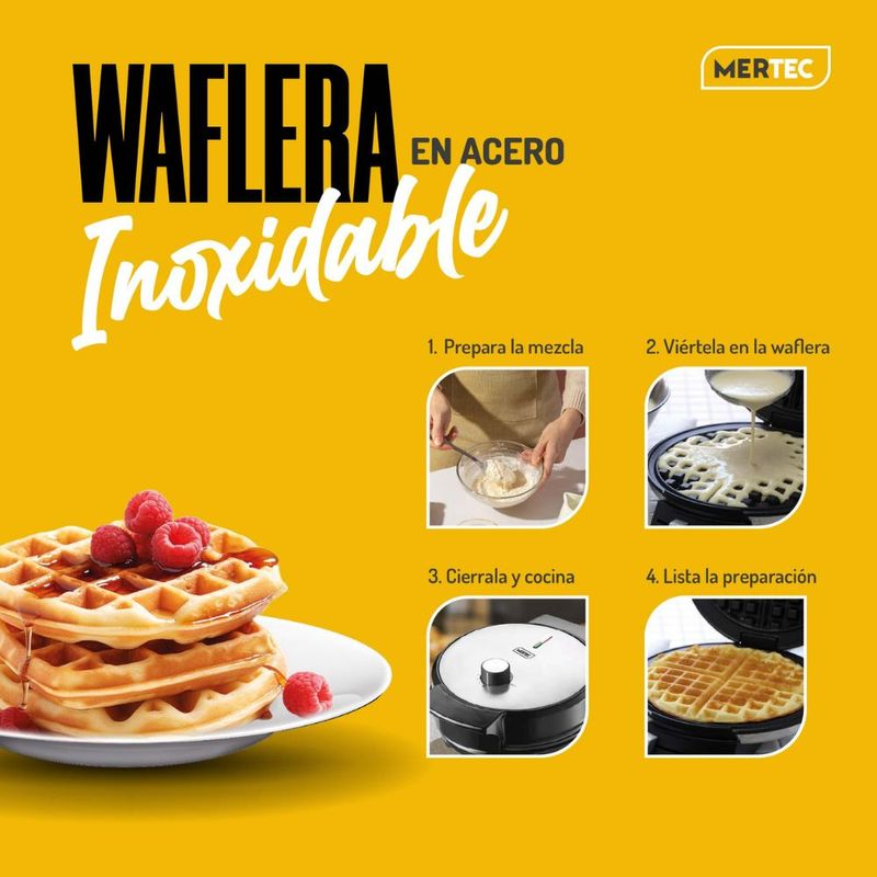 Waflera MERTEC MT-038S de Acero Inoxidable - 1000W, Antiadherente, Control de Temperatura y Diseño Waffle