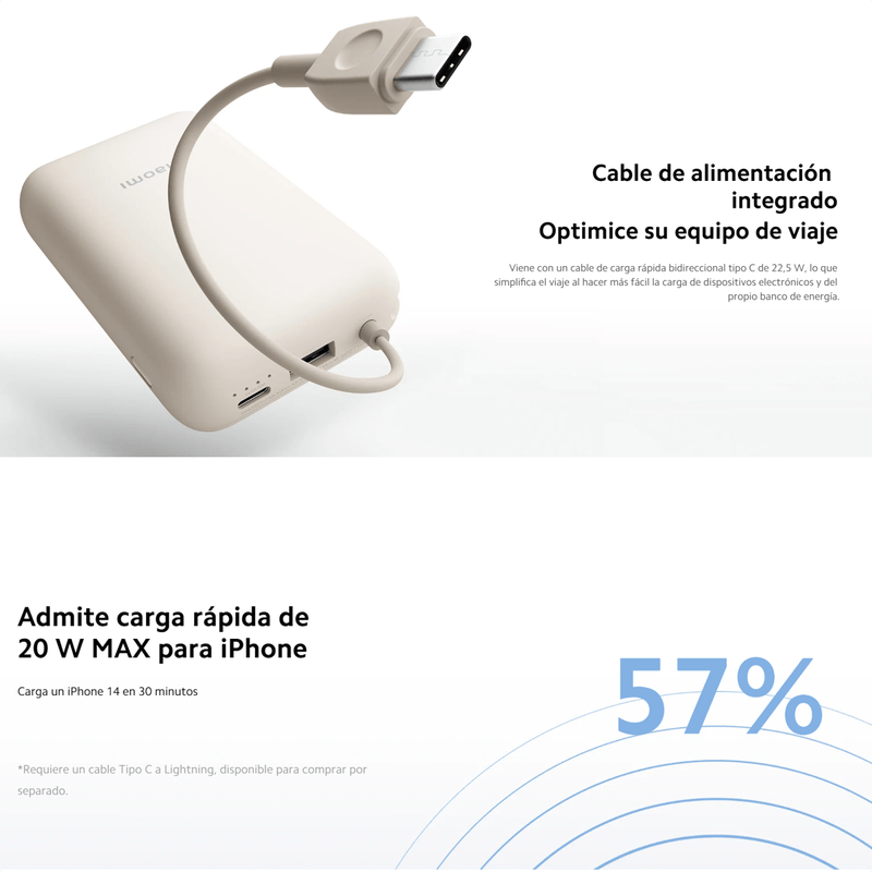 Xiaomi Power Bank 10000mAh (Cable Integrado) 22.5W
