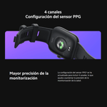 La configuración del sensor PPG* se ha actualizado para incluir 4 canales, lo que ayuda a aumentar la precisión de la monitorización de la salud.
