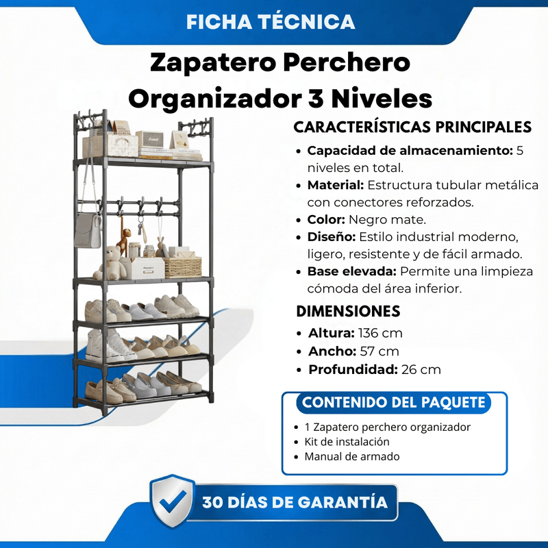 Zapatero Perchero Organizador Multifuncional – 5 Niveles